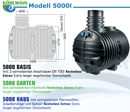 Köhlmann Erdtanks werden umweltfreundlich (ISO zertifiziert) im Rotations-Sinter-Verfahren aus einem Stück (100 % wasserdicht) ohne Schweißnähte gefertigt. Wurzelwerk kann nicht eindringen. Der verwendete Behälterwerkstoff Polyethylen (PE) ist dauerhaft dicht, säurebeständig und sogar lebensmittelecht! Die Ausstattungen sind nach jahrelanger Erfahrung optimal auf den Einbau vor Ort abgestimmt.