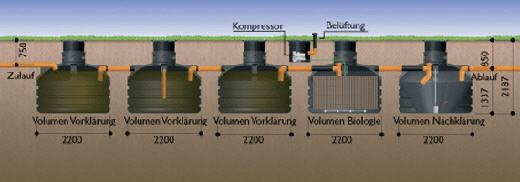 Die Kompaktkläranlage L ist ein komplett vormontiertes, biologisches System zur Reinigung häuslicher Abwässer von größeren Ansiedlungen oder Gewerbebetrieben bis 40 EW. Die biologische Reinigung basiert auf dem Festbettverfahren. Die Behälter der Kompaktkläranlage bestehen vollständig aus witterungsbeständigem und abwasserresistentem PE-Kunststoff und haben dadurch eine wesentlich höhere Lebensdauer als Betonbehälter. Die Rippenstruktur der Behälter bewirkt eine besonders hohe Stabilität gegen Erd- und Wasserdruck.